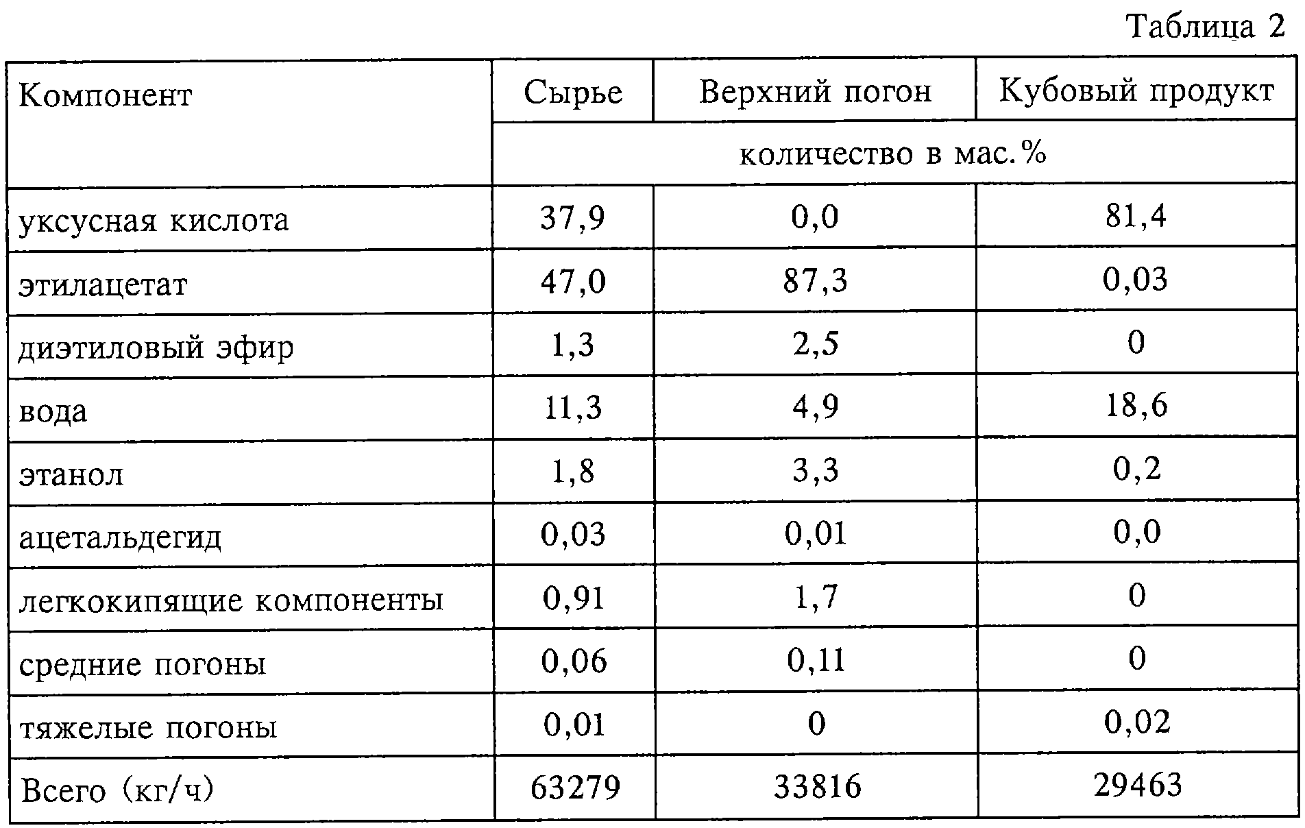 Изобретение относится к усовершенствованному способу очистки реакционных продуктов процесса прямого присоединения, включающему реакцию этилена с уксусной кислотой в присутствии кислотного катализатора с получением этилацетата, и очистку продуктов рецикла, причем этот способ очистки включает следующие стадии: (I) подачу реакционных продуктов в колонну (А) для удаления кислоты, из основания которой отводят уксусную кислоту, а с ее верха отбирают по меньшей мере фракцию, включающую легкокипящие компоненты, содержащие, помимо прочего, углеводороды, этилацетат, этанол, диэтиловый эфир и воду, и направляют в аппарат (А1) для декантации с целью разделить эти верхние погоны на фазу, богатую этилацетатом, и водную (богатую водой) фазу, (II) отдельный возврат по меньшей мере части богатой этилацетатом фазы и практически всей водной фазы из аппарата (А1) для декантации в виде флегмы в верхнюю часть колонны (А) или вблизи ее верха, (III) подачу остальной части богатой этилацетатом фазы из аппарата (А1) для декантации в верхнюю часть рафинационной колонны (С) или вблизи ее верха, (IV) отвод из колонны (С): (а) недогона, включающего существенно рафинированный этилацетат, который направляют в очистную колонну (Е), (б) отбираемого из верха колонны продукта, включающего легкокипящие компоненты, содержащие, помимо прочего, ацетальдегид и диэтиловый эфир, который направляют в колонну для удаления альдегида, и (в) боковой фракции, включающей главным образом этилацетат, этанол и некоторое количество воды, которую отводят в точке, находящейся ниже точки ввода богатой этилацетатом фазы, удаляемой из колонны (А), (V) отвод сброса, включающего ацетальдегид, из верхней или вблизи верхней части колонны для удаления альдегида и возврата диэтилового эфира, выделенного из основания колонны для удаления альдегида, в этерификационный реактор и (VI) очистку рафинированного этилацетата в колонне (Е). Способ очистки позволяет удалить ацетальдегидные примеси, поскольку присутствующий ацетальдегид оказывает негативное влияние на катализатор этерификации. 2 н. и 26 з.п. ф-лы, 13 табл., 1 ил.