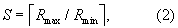 – это минимальное целое, большее или равное * (здесь * обозначает Rmax/Rmin).
