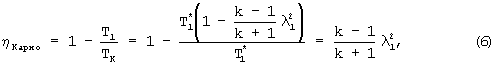 – коэффициент скорости потока на входе в рабочую камеру; статическая температура после компрессора ТК равна полной температуре на входе в сопло ТК=Т*1.