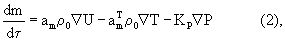 Кр – коэффициент молярного переноса под действием градиента давления;
