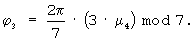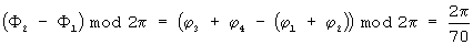При включении синтезатора частоты в КРС 2.1-2.4 записывается номер отсчета k=010 в унитарном коде СОК k=(0, 0, 0, 0). Остатки числа k по основаниям m1, m2, m3 и m4 умножаются на соответствующие остатки a1, a2, a3 и а4 в умножителях 3.1-3.4. Получаем число в коде СОК С[0]=(0, 0, 0, 0). В управляемых фазовращателях 5.1-5.4 устанавливаются сдвиги фазы Это число перемножается по соответствующим основаниям в умножителях 3.1-3.4 с остатками числа А=(1, 0, 3, 3). Получаем: C[1]=(1, 0, 3, 3). В УФ 5.7-5.4 устанавливаются сдвиги фазы Разность фазы гармонических сигналов на входе ФД 6 будет равна Источники информации 3. Цифровые радиоприемные системы: Справочник /М.И.Жодзишский, Р.Б.Мазепа, Е.П.Овсянников и др./Под ред. М.И.Жодзишского. М.: Радио и связь, 1990, – 208 с. 4. Акушский И.Я., Юдицкий Д.И. Машинная арифметика в остаточных классах. – М.: Сов. радио, 1968, – 440 с. 6. Долгов А.И. Диагностика устройств, функционирующих в системе остаточных классов. – М.: Радио и связь, 1982, – 64 с. Формула изобретения
