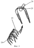 Почвообрабатывающе-посевной агрегат содержит раму 1 с присоединительным устройством 2, передним 3 и задними опорными колесами (не показаны). На раме 1 установлен бункер 4 (на фиг.2 не показан) с двумя отсеками для семян и минеральных удобрений, высевающими аппаратами 5 и семяпроводами 6. Высевающие аппараты приводятся во вращение от ходовых колес агрегата через цепные передачи (не показаны). На раме 1 за бункером 4 установлена емкость 7 для аммиачной жидкости или других жидких удобрений с дозирующим устройством 8 и направляющими шлангами 9 (на фиг.2 не показаны). На раме 1 в два или три ряда установлены стойки 10, на нижних концах которых закреплены стрельчатые лапы 11, а также сошники 12 для высева семян и удобрений и направляющие шланги 9 для внесения в почву жидких минеральных удобрений. К задней части рамы 1 прикреплены шарнирно подпружиненные тяги 13 (механизмы подпружинивания не показаны), в захватах которых под углом атаки установлены секции 14 прикатывающих рабочих органов, состоящие из наборов каточков 15, расположенных на осях с определенным шагом и зафиксированных на этих осях. Тяги 13 имеют винтовые механизмы регулировки длины для изменения угла атаки секции прикатывающих рабочих органов. На раме 1 агрегата жестко закреплены левая 16, центральная 17 и правая 18 тяги крепления механизмов подвески устройств для рыхления и выравнивания поверхности почвы. К левой, центральной и правой тягам шарнирно прикреплены левый 19, центральный 20 и правый 21 поводки устройств для рыхления и выравнивания поверхности почвы. На левой 16, центральной 17 и правой 18 тягах крепления механизмов подвески устройств для рыхления и выравнивания почвы установлены с возможностью перемещения в горизонтальной и вертикальной плоскостях ограничители 22, обеспечивающие подъем левого 19, центрального 20 и правого 21 поводков в транспортное положение вместе с рамой 1, левой 16, центральной 17 и правой 18 тягами. На кронштейнах тяг 16, 17 и 18 и кронштейнах поводков 19, 20 и 21 установлены пружинные механизмы 23 регулировки глубины хода устройств для рыхления и выравнивания поверхности поля. Пружинные боронки выполнены в виде поперечных брусьев 24, на которых смонтированы рабочие элементы, выполненные в виде закрепленных на поперечных брусьях центральной частью стальных лент 25 с витыми свободными концами.