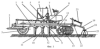 При рабочем проходе агрегата в начале движения рычаг гидросистемы трактора переводится в плавающее положение, при этом опорные колеса агрегата переводятся из транспортного в рабочее положение, откатываются назад и вверх относительно рамы 1. Рабочие органы агрегата заглубляются в почву под действием массы машины. Глубина обработки почвы и глубина заделки семян регулируется вращением регулировочных винтов (на чертежах не показаны). При движении агрегата стрельчатая лапа 11 рыхлит почву, подрезает сорняки и формирует уплотненное ложе для семян и удобрений. Поступающие из семенного бункера 4 семена и сыпучие минеральные удобрения поступают на направители-разбрасыватели и распределяются в пространстве под лапой широкой полосой. Семена и удобрения засыпаются сходящей с крыльев стрельчатой лапы почвой. Секции прикатывающих каточков 14 в “активном” режиме рыхлят верхний слой почвы до мелкозернистого состояния, создают под этим слоем уплотненное ложе, вычесывают сорные растения. На чистых от сорняков полях и при необходимости защиты поверхности почвы от ветровой эрозии каточки устанавливаются в “пассивное” положение. Образующиеся после прохода секций каточков 15 неровности поверхности поля на стыках секций по оси симметрии агрегата и на стыках смежных проходов заравниваются устройствами для рыхления и выравнивания поверхности почвы 25. Глубина обработки почвы пружинными боронками 25 устанавливается пружинными механизмами 23 и может ограничиваться установкой в горизонтальной и вертикальной плоскостях ограничителей 22. Ширина захвата каждого устройства для рыхления и выравнивания поверхности почвы должна быть на 20% больше удвоенной величины шага расстановки каточков на осях. Это обеспечивает полное заравнивание стыков смежных проходов агрегата и неровностей по оси его симметрии. При встрече с препятствием стрельчатой лапы 11 она имеет возможность отклониться назад и, после прохода препятствия, возвратиться в исходное рабочее положение. При встрече с препятствием пружинной боронки 25 она также имеет возможность отклониться назад, при этом сжимается пружина пружинного механизма 23. Под действием этой пружины рабочий орган после прохода препятствия возвращается в исходное положение. После окончания рабочего прохода агрегата перед поворотной полосой тракторист переводит рычаг гидросистемы в положение “подъем”, при этом колеса подкатываются назад и поднимают раму агрегата в транспортное положение. Вместе с рамой в транспортное положение переводятся стойки 10 и стрельчатые лапы 11, пружинные рабочие органы 25 устройств для рыхления и выравнивания поверхности почвы. Приводы высевающих аппаратов отключаются. После выполнения поворота или разворота цикл повторяется.