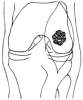 Клинический пример 2. Больная М., 54 лет, история болезни №3904, поступила на стационарное лечение в Самарскую областную клиническую больницу им М.И.Калинина с деформирующим гонартрозом III стадии. После проведенного обследования больной была произведена мозаичная резекция дефекта суставного хряща с пластикой костными аутотрансплантатами по предлагаемому способу. Послеоперационный период протекал без осложнений. Рана зажила первичным натяжением. Через два дня после операции была разрешена ходьба на костылях. Пациентка обследована спустя восемь месяцев после хирургического вмешательства. Жалоб не предъявляет, неврологических расстройств не выявлено, миграции трансплантатов нет.