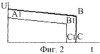 Если открывание транзистора 16 и связанное с ним выключение силовых транзисторов осуществляется по сигналу датчика 25 магнитного поля или таймера 26, формируется “жесткий” участок внешней характеристики АВ (см. фиг.2), причем среднее значение выходного напряжения растет при увеличении длительности такта (фиг.3) за счет уменьшения относительного времени на перезаряд конденсатора и может регулироваться длительностью таймера. При выключении силовых транзисторов по превышении их током заданного порога формируется падающий участок характеристики ВС (фиг.2) за счет ограничения тока первичной и, следовательно, вторичной обмотки сварочного выходного трансформатора. Перестройка этого участка осуществляется регулированием порога включения порогового устройства на транзисторе 39 резистором 41.