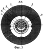 Остальные круги 2, 4 и т.д. закреплены на валу жестко с помощью косых шайб 10, 11, гайки 12 и состоят из лепестков, расположенных вдоль оси, и установлены радиально (см. фиг.4).