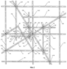 Введение дополнительных элементов (узлов) в устройство, показанное на фиг.1, позволяет, помимо определения координат кривых “2”-го, “3”-го, “4”-го, “5”-го и далее порядков и построения кривых “2”-го, “1+1/2”, “1+1/3”, “1+1/4”, “1+1/5” и далее порядков, строить кривые “3”-го, “4”-го, “5”-го и более порядков. Для этого, как показано на фиг.2, ниже горизонтальной направляющей 1-1 на расстоянии, равном расстоянию между осями 4 и 11, размещают нижнюю горизонтальную направляющую 1-4, на пересечении направляющей 1-4 со звеном 3-4 крестообразного рычага с помощью диады ползунов 6-7 и 7-8 устанавливают дополнительную вертикальную штангу 5-7, на пересечении которой со штангой 5-3 устанавливают крестообразный ортогональный ползун 8-5, центр 23 которого в процессе движения описывает совокупность точек параболы третьего порядка. Справа от направляющей 1-3 на расстоянии, равном расстоянию между осями 4 и 11, размещают дополнительную вертикальную направляющую 1-6, на пересечении которой со звеном 3-2 крестообразного рычага с помощью диады ползунов 6-8 и 7-9 устанавливают дополнительную горизонтальную штангу 5-5, на пересечении которой со штангой 5-1 устанавливают крестообразный ортогональный ползун 8-6, центр 24 которого описывает совокупность точек параболы четвертого порядка. Выше направляющей 1-1 на расстоянии, равном расстоянию между осями 4 и 11, размещают верхнюю горизонтальную направляющую 1-5, на пересечении которой со звеном 3-3 крестообразного рычага с помощью диады ползунов 6-9 и 7-10 устанавливают вторую дополнительную вертикальную штангу 5-6, на пересечении которой со штангой 5-4 устанавливают ортогональный крестообразный ползун 8-7, центр 25 которого в процессе движения описывает совокупность точек параболы пятого порядка. Процесс построения кривых более высших порядков может быть продлен до бесконечности, охватывая весь натуральный ряд чисел.
