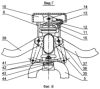 Управление велосипедом в варианте, показанном на фиг.1-7, осуществляется рычагами 37, 38 с рулевыми рукоятками 39, 40. Для выполнения, например, правого поворота велосипедист правой рукой нажимает в направлении сверху вниз на правую рулевую рукоятку 39 и, соответственно, на рычаг 37, который тягой 42 давит на ось 43 рычага 44, что вызывает поворот вправо передней вилки 5 с передним колесом 1. Аналогично выполняется левый поворот, только для этого велосипедист нажимает левой рукой на левую рукоятку 40.
