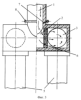Изобретение поясняется чертежами, где на фиг.1 изображен продольный разрез в диаметральной плоскости реактора; на фиг.2 показан вид спереди с разрезом по оси вертикальной реакционной камеры; на фиг.3 показан вид сверху с вырезом в плоскости оси распределительной камеры, соединяющей цилиндрическую камеру и две вертикальные реакционные камеры.