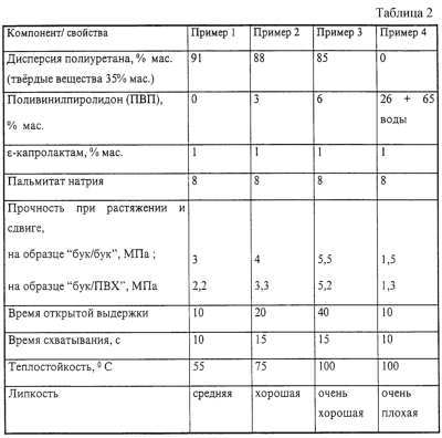 1. Клеящий карандаш, изготавливаемый из водной композиции из синтетического полимера, обладающего клеящими свойствами, и мыльного геля, используемого в качестве формообразующей каркасной субстанции, а также в случае необходимости других вспомогательных веществ, отличающийся тем, что водная композиция в качестве синтетического полимера содержит смесь полиуретана 10-60 мас.% и поливинилпирролидона 0,5-30 мас.%. 2. Клеящий карандаш по п.1, отличающийся тем, что водная композиция содержит полиуретан в виде дисперсии, при этом полиуретан является продуктом реакции, по крайней мере, одного многоатомного спирта, по крайней мере, одного многофункционального изоцианата, по крайней мере, одного компонента, способствующего образованию в щелочном водном растворе солей, и/или неионитного гидрофильного модификатора, а в случае необходимости по крайней мере одного удлинителя цепей. 3. Клеящий карандаш по одному из пп.1 или 2, отличающийся тем, что водная дисперсия полиуретана содержит продукт реакции, состоящий из смеси многоатомных спиртов, компонента, способствующего образованию в щелочном водном растворе солей, и полиизоцианата в соотношении ОН:NCO в диапазоне от 1,0:0,8 до 1,0:4,0, предпочтительно от 1,0:1,1 до 1,0:2,0, особенно предпочтительно от 1,0:1,1 до 1,0:1,8. 4. Клеящий карандаш по одному из пп.1, 2 или 3, отличающийся тем, что водная дисперсия полиуретана получена из многоатомных спиртов, способных образовывать простые и/или сложные полиэфиры. 5. Клеящий карандаш по одному из пп.1-4, отличающийся тем, что водная дисперсия полиуретана содержит продукт реакции дигидроксикарбоновой кислоты, способствующей образованию солей. 6. Клеящий карандаш по одному из пп.1-5, отличающийся тем, что водная дисперсия полиуретана является продуктом реакции, по крайней мере, одного двух- или трехфункционального алифатического изоцианата. 7. Клеящий карандаш по одному из предшествующих пунктов, отличающийся тем, что молекулярный вес поливинилпиролидона составляет не менее 10000. 8. Клеящий карандаш по одному из пп.1-7, отличающийся тем, что в качестве мыла, образующего гелевую структуру, содержатся соли натрия жирных кислот естественного или синтетического происхождения, имеющие в своих цепочках от 12 до 22 атомов углерода. 9. Клеящий карандаш по одному из пп.1-8, отличающийся тем, что в качестве прочих вспомогательных веществ содержатся водорастворимые мягчители, красители, душистые вещества, смолы, консерванты и/или регуляторы содержания влаги. 10. Способ изготовления клеящих карандашей по пп.1-9, отличающийся тем, что смешивают друг с другом составные части, образующие мыльный гель, и дисперсию полиуретана, а также поливинилпирролидон и вспомогательные вещества, нагревают до температуры не менее 50°С до образования однородной смеси, разливают эту смесь в формы и дают ей без какого-либо механического воздействия застыть с образованием геля.