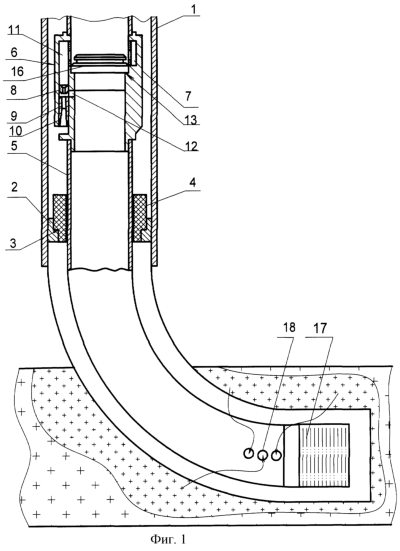 1. Скважинная струйная установка для каротажа горизонтальных скважин, содержащая установленное в обсадной колонне на нижнем ее участке кольцо со ступенчатым проходным каналом для установки герметизирующего узла, гладкую колонну труб с установленным на ней струйным насосом, в корпусе которого установлены активное сопло и камера смешения с диффузором, а также выполнены канал подвода активной среды, канал подвода откачиваемой из скважины среды и ступенчатый проходной канал, причем в последнем предусмотрена возможность установки блокирующей вставки со сквозным проходным каналом, посредством которой перекрыт канал подвода активной среды, или депрессионной вставки, при установке которой перекрыто поперечное сечение колонны труб, на нижнем конце колонны труб установлен каротажный прибор, между последним и струйным насосом на колонну труб надет с возможностью осевого перемещения относительно колонны труб герметизирующий узел, а нижний участок колонны труб над каротажным прибором выполнен перфорированным.