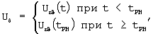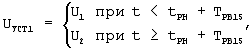По команде КРН в запоминающем устройстве 8 фиксируется то значение сигнала U , которое он имеет в момент времени tРН, и это запомненное значение U (tРН) с выхода устройства 8 подается на один из входов сумматора 10. На второй вход сумматора 10 поступает сигнал U Z1 с головки 1, а на третий вход этого сумматора подается постоянный сигнал U3 с блока бортовой автоматики 5. Выходной сигнал U10 сумматора 10 подается на ограничитель 13, с выхода которого ограниченный по абсолютному значению уровнем U13мax сигнал U13 поступает на вход реле времени 14. Реле времени 14 запускается командой КРН в момент времени tРН и в течение интервала времени ТРВ14 его контакты остаются замкнутыми, пропуская выходной сигнал U13 ограничителя 13 на один из выходов сумматора 12, а по истечении этого интервала снова размыкаются. В результате сигнал UУСТ2 равен 0 до момента времени tРН и после момента (tРН+ТРВ14), а внутри этого интервала он равен сигналу U13, уровень которого определяется суммой значений сигналов U (tРН), U Z1 и U3 или значением U13мах.