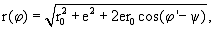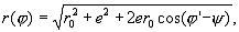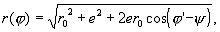 Из условия {r1( )-r2( )}2 min после преобразований получаем следующее выражение для величины эксцентриситета: