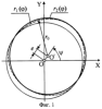 Поставленная задача достигается тем, что в способе разностного измерения отклонения от круглости, согласно изобретению, вместо стабилизации геометрического центра вращающегося изделия фиксируют получающийся эксцентриситет е и начальную фазу гармоники первого порядка ряда Фурье, создают систему координат, соответствующую минимальной методической погрешности, определяют значение погрешности изделия r( ) в этой системе координат по формулам: