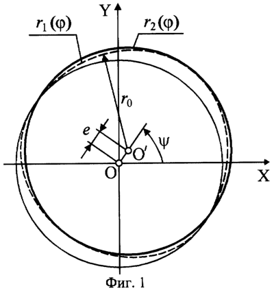 2. Способ по п.1, отличающийся тем, что эксцентриситет е, начальную фазу гармоники первого порядка ряда Фурье и значение погрешности формы изделия r( ) рассчитывают по формулам
