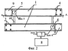 Устройство, реализующее способ (фиг.2), содержит, например, весы, состоящие из балок 1 (например, двутавровых высотой – для весов шириной – около 800 мм), консольно закрепленных на фундамент 2 (фиг.3) анкерными болтами 3. Балки 1 имеют пропилы 4 полок и опираются свободными концами на тензодатчики 5 и 6 (например, типа М70 фирмы Тензо-М), выходы которых вых.5 и вых.6 подсоединены к измерительному преобразователю 7 (например, типа Микросим 0801 фирмы Метра), в свою очередь через стандартный интерфейс (например, RS-485) связанному с персональным компьютером 8 (например, Pentium). Из соображений дизайна конструкция весов дополнена въездными вставками 9, с весами в общем несвязанными. Балки 1 соединены между собой струнками-упорами 10.