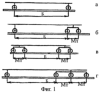 На фиг.3 весы показаны в разрезе; на фиг.4 даны эпюры выходного сигнала тензодатчиков 5 (фиг.4а) и 6 (фиг.4в) при проезде взвешиваемого объекта по весам слева направо в соответствии с фиг.2. Заметим, что пропилы 4, выполненные в балках 1, сообщают им свойства весовых струнок, так что приложенное в любом сечении балок 1 усилие воспринимается тензодатчиками 5, 6 одинаково. Результирующий сигнал на входе измерительного преобразователя 7 приведен на фиг.4в (без учета динамических помех).
