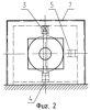 На чертежах (фиг.1 – вид сбоку, фиг.2 – вид сзади) схематически показан стенд для определения оптической плотности продуктов сгорания твердого ракетного топлива.