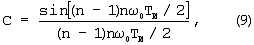 где (t) – измеряемый сигнал, представленный (6), Ти – время измерения (интегрирования), соs 0t – косинусная составляющая опорного сигнала, т.е. гармонический сигнал, сформированный в измерителе, той же частоты, что и измеряемый сигнал (частота сигнала известна), и имеющий экстремум в середине измерительного интервала. С этим связано название “косинусная составляющая”опорного сигнала. Сигнал, имеющий нулевое значение в середине измерительного интервала – синусная составляющая опорного сигнала – в предлагаемом способе не используется, соsn 0t – косинусная составляющая n-й гармоники опорного сигнала (синусная составляющая n-й гармоники опорного сигнала в предлагаемом способе также не используется).