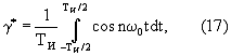при этом (t) – измеряемый гармонический сигнал, Ти – время измерения (интегрирования), cos 0t – косинусная составляющая опорного сигнала, т.е. гармонический сигнал, сформированный в измерителе, той же частоты, что и измеряемый сигнал (частота сигнала известна) и имеющий экстремум в середине измерительного интервала.