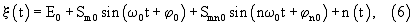 где Е0 – постоянная составляющая исследуемого сигнала, 0, Sm0, 0 – частота, амплитуда и фазовый сдвиг первой гармоники исследуемого сигнала, Smn0, n0 – амплитуда и фазовый сдвиг n-й гармоники сигнала, n – номер гармоники, присутствующей в сигнале, n(t) – флуктуационный шум, присутствующий совместно с полезным сигналом.