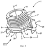 3. Прибор по п.1 или 2, отличающийся тем, что осевой выступ (25), охватывающий своим радиально-внешним концом (23) на радиальном расстоянии (24) мелкую резьбу (13) на ее наружной стороне, выполнен за одно целое с фиксирующей шейкой (1) в виде защиты от проворачивания, действующей в положении монтажа относительно стенового элемента или стеновой панели (15).