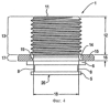 Мелкая резьба 13 переходит с радиусом скругления 20 своей впадины без сбега в безрезьбовой, в основном, цилиндрический участок 17 хвостовика фиксирующей шейки 1.
