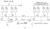 Существенный недостаток указанного способа защиты связан с большим числом ложных срабатываний защиты, которые происходят при проходе подвижного состава (электровоза под током) через воздушный промежуток. Эта ситуация показана на фиг.1, где в качестве примера защита фидеров осуществляется выключателями с реле РДШ (Р1-Р4). Электровоз, потребляющий ток Iэ, двигаясь слева направо со скоростью V, своим токоприемником перекрывает воздушный промежуток контактной сети ВП. Из-за броска (приращения) тока срабатывает РДШ Р2 фидера 2 п/ст. А, на который въезжает электровоз, и отключает свой выключатель, а затем и РДШ Р4 п/ст. или поста секционирования Б также отключает свой выключатель, в результате чего участок, на который заезжает электровоз, обесточивается. Вследствие этого между ветвью, с которой съезжает электровоз, и токоприемником появляется электрическая дуга, которая пережигает провода воздушного промежутка.