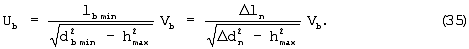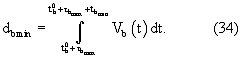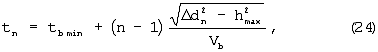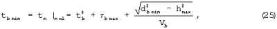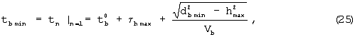 Примем, что время разгона подвижного объекта 2 до скорости Vb с началом горизонтального движения пренебрежимо мало. Если временем разгона пренебречь нельзя, то момент времени fb min сброса первых промежуточных станций 5 определяют из решения уравнения