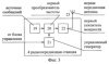 Первая приемная антенна 24 радиоприемной станции 3, размещенной на неподвижном объекте 1, принимает радиосигнал, переданный радиопередающей станцией 4. Сигнал с выхода первой приемной антенны 24 поступает на вход первого полосового фильтра 25, обеспечивающего избирательность по зеркальному каналу (см., например, Радиоприемные устройства. Под ред. В.И. Сифорова. – М.: Советское радио, 1974, с.235). Сигнал с выхода первого полосового фильтра 25 поступает на вход первого малошумящего усилителя 26, сигнал с выхода которого поступает на первый вход второго преобразователя 27 частоты. На второй его вход поступают колебания частоты вырабатываемые первым гетеродином 28, где faп – промежуточная частота радиоприемной станции 3. Значения рабочих частот принимаемых радиосигналов определены формулой (30). Сигнал промежуточной частоты faп c выхода второго преобразователя 27 частоты поступает на вход первого усилителя 29 промежуточной частоты, сигнал с выхода которого поступает на входы всех вторых полосовых фильтров 31. (Спектр сигнала, действующего на выходе второго преобразователя 27 частоты, содержит составляющие, соответствующие рабочим частотам принимаемых радиосигналов. При этом спектр данного сигнала вследствие малости f является узкополосным и сосредоточенным около промежуточной частоты faп). На основании формул (32), (33) частота настройки второго полосового фильтра 31 q-го первого канала 30 обработки равна Полосы пропускания вторых полосовых фильтров 31 не перекрываются. Сигналы с выходов вторых полосовых фильтров 31 поступают на соответствующие коммутируемые входы первого аналогового коммутатора 34 и на входы соответствующих первых измерителей 32 мощности. В каждом первом канале 30 обработки сигнал с выхода первого измерителя 32 мощности поступает на вход первого аналого-цифрового преобразователя 33, который вырабатывает двоичный код, соответствующий значению мощности радиосигнала, принимаемого на соответствующей заданной рабочей частоте. Первый микроконтроллер 35 считывает двоичные коды с выходов всех первых аналого-цифровых преобразователей 33 и определяет по ним заданную рабочую частоту принимаемого радиосигнала максимальной мощности. (В данном случае заданной рабочей частотой принимаемого радиосигнала максимальной мощности является заданная рабочая частота fb радиосигнала, передаваемого с подвижного объекта 2.) Затем первый микроконтроллер 35 формирует на управляющих входах первого аналогового коммутатора 34 управляющие сигналы, по которым первый аналоговый коммутатор 34 подключает выход второго полосового фильтра 31, соответствующего заданной рабочей частоте принимаемого радиосигнала максимальной мощности, к входу первого демодулятора 36. Двоичная последовательность импульсов, соответствующая передаваемому сообщению, поступает с выхода первого демодулятора 36 на вход получателя 37 сообщений.